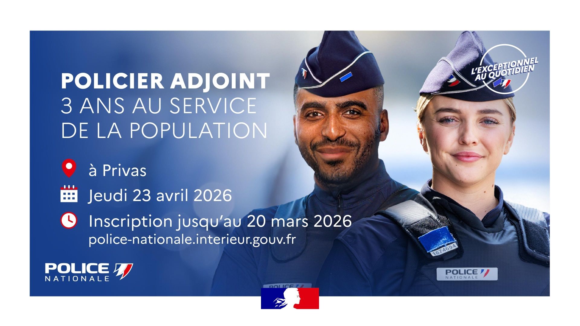 RECRUTEMENT POLICIERS ADJOINTS – INSCRIPTION JUSQU’AU 20 MARS 2026 @Police nationale de l’Ardèche